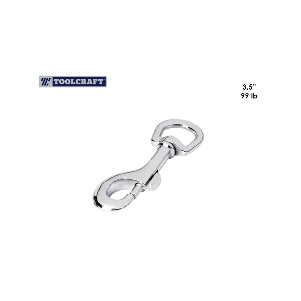 ¿Qué es? Es un gancho de seguridad (mosquetón) reforzado de la marca Toolcraft, fabricado en acero con acabado niquelado. Su característica principal es que la entrada del ojo (el anillo del destorcedor) tiene una medida de 1 pulgada, lo que la hace una de las versiones más grandes y robustas en su categoría.