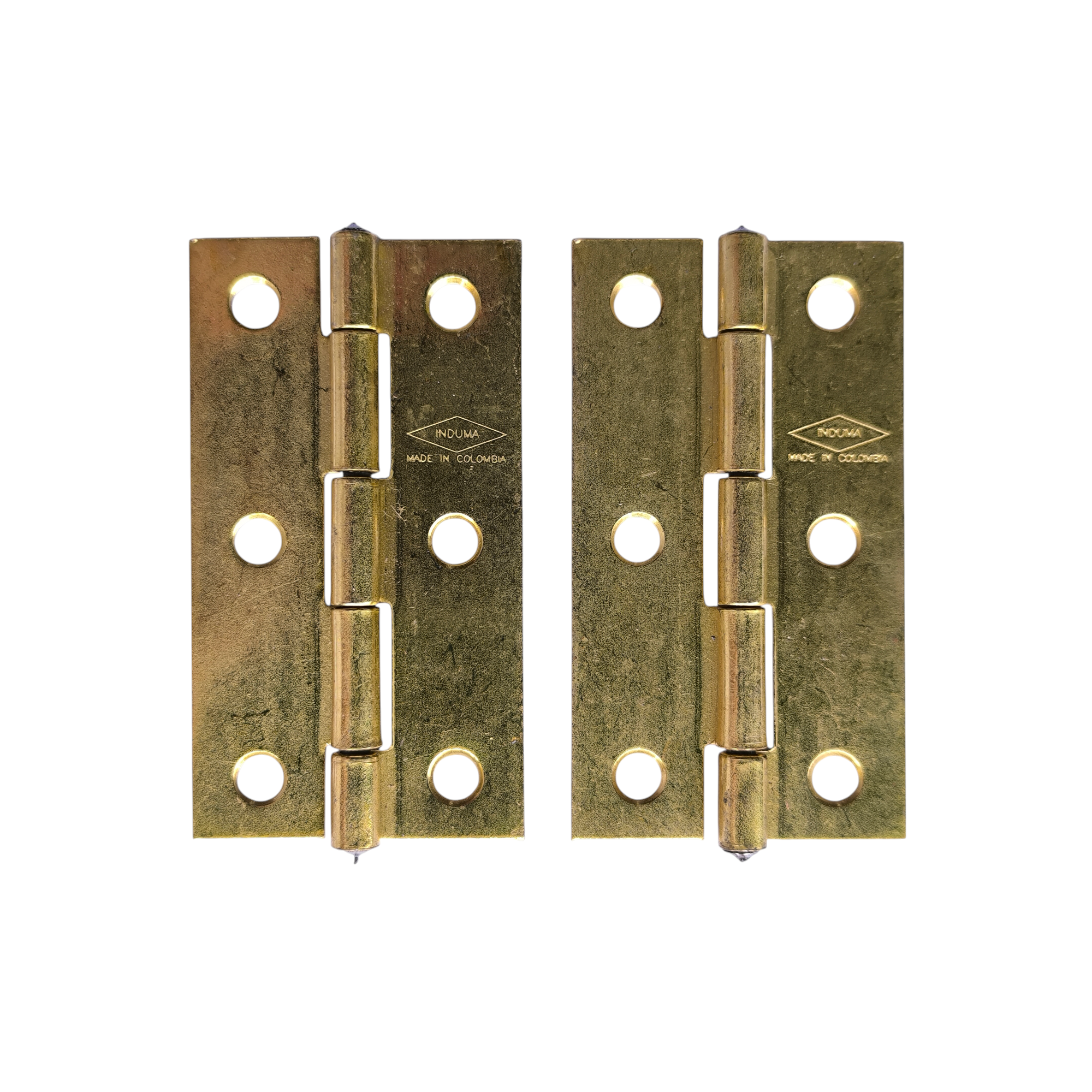 ¿Qué es? Es una bisagra tipo libro (rectangular) fabricada por la marca Induma, elaborada en acero de alta resistencia con un acabado latonado (dorado). Se caracteriza por un troquelado preciso y un color amarillo metálico brillante que imita el oro.
